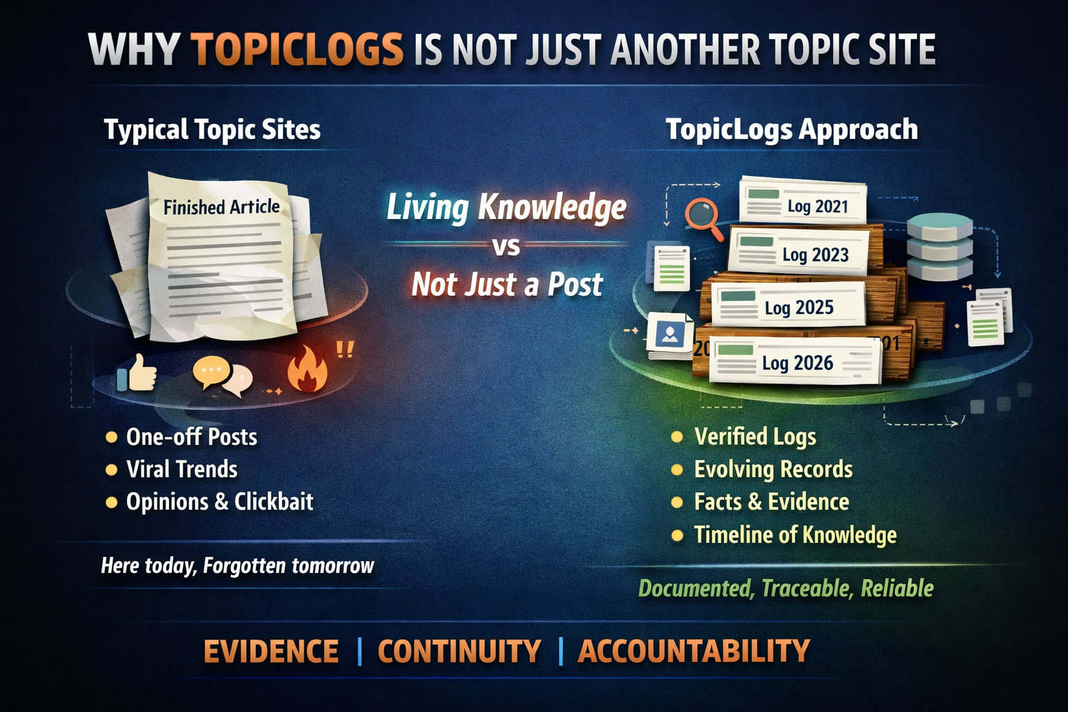 TopicLogs is not a typical blog or topic website. It is an evidence-based knowledge platform where topics act as containers and logs preserve verified facts, events, and references over time. Content here is documented, reviewed, and accountable.